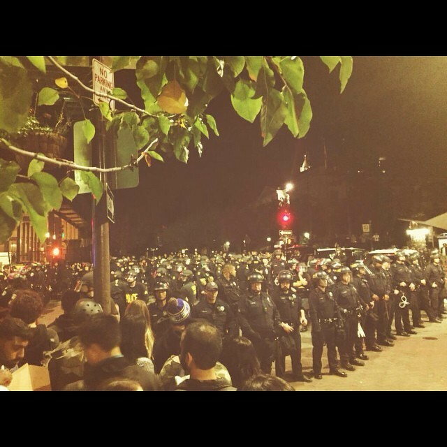 This is Berkley, CA right now. They tear gassed & beat people. Helicopters circling. The public wants police to stop killing us. This is the response we get. If you’ve seen The Hunger Games, that’s an excellent metaphor for the reality of life in the USA.