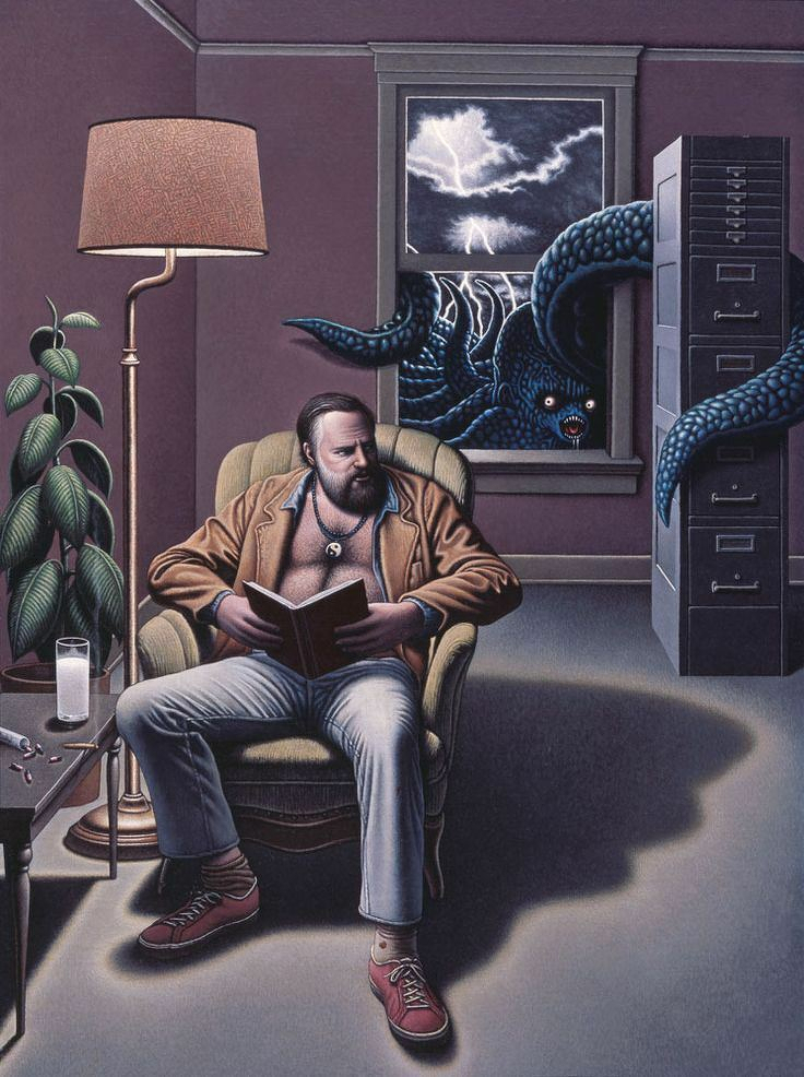 Kent Bellows, cover illustration for Rolling Stone of Philip K. Dick, 1975
