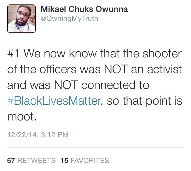#1 We now know that the shooter of the officers was NOT an activist and was NOT connected to #BlackLivesMatter, so that point is moot.