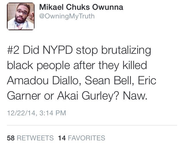 #2 Did NYPD stop brutalizing black people after they killed Amadou Diallo, Sean Bell, Eric Garner or Akai Gurley? Naw.